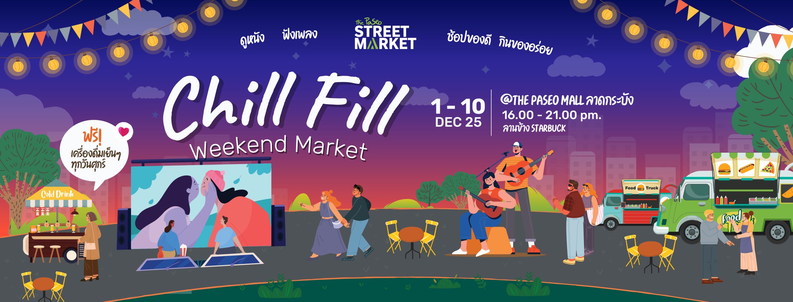 กับงาน CHILL FILL WEEKEND MARKET ที่ The Paseo Street Market ตลาดที่จะมาเติมความชิลล์ ในบรรยากาศสบาย ๆ ไฮไลต์กิจกรรม Chill Fill Signature Bites: ฟินกับ Food Truck และอาหารหลากสไตล์ ทั้งอาหารไทย, ฟิวชั่น, เบอร์เกอร์,