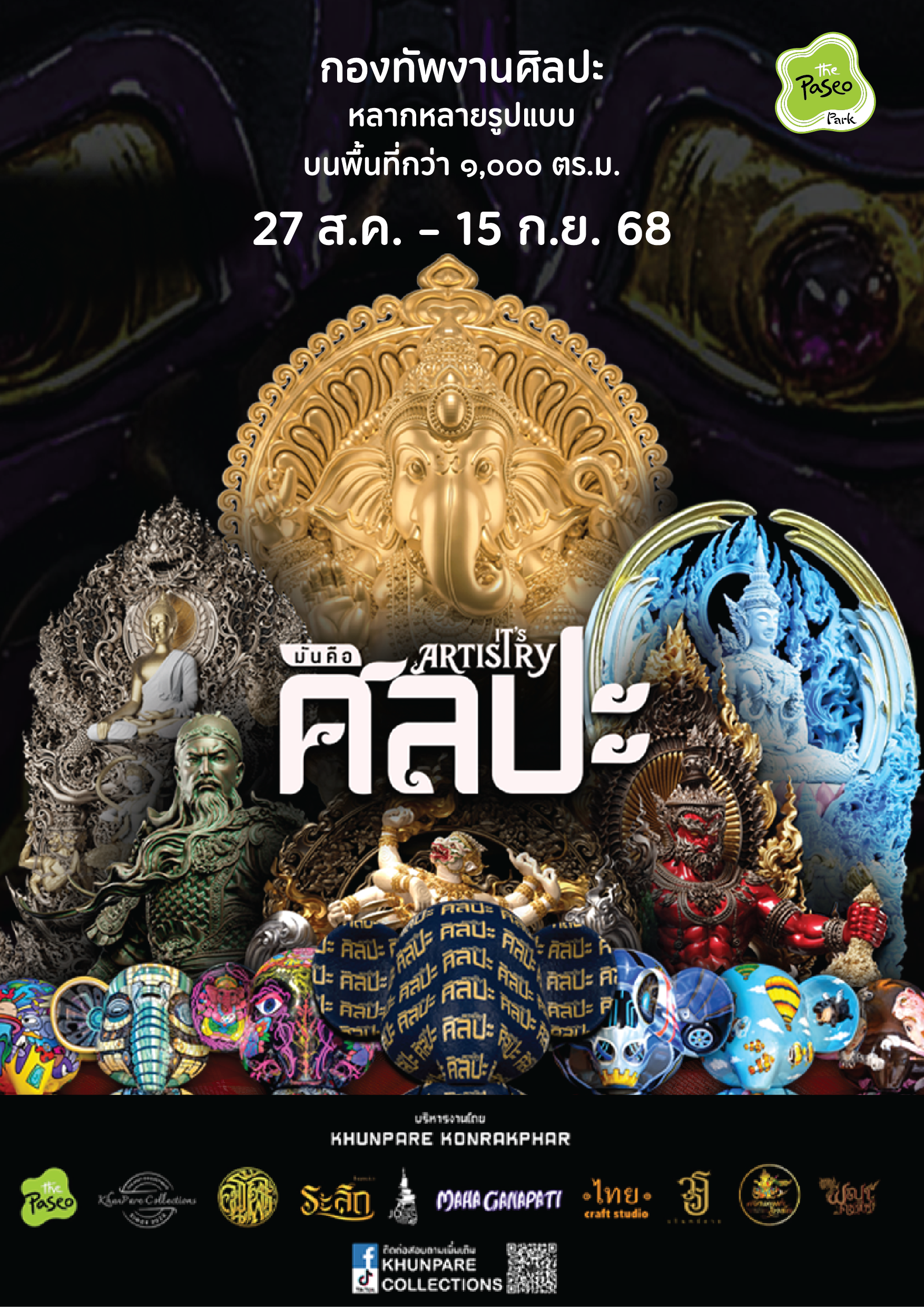 ขอเชิญทุกท่านร่วมดื่มด่ำไปกับงานแสดงศิลปะสุดยิ่งใหญ่แห่งปี “IT IS ARTISTRY: มันคือศิลปะ” นิทรรศการที่จะประกาศให้โลกรู้ว่าศิลปะไทยไม่เคยเป็นรองใคร! พบกับผลงานศิลปะและประติมากรรมกว่า 500 ชิ้น จากศิลปินชั้นนำกว่า 100 ท่าน บนพื้นที่จัดแสดงกว่า 1,000 ตารางเมตร