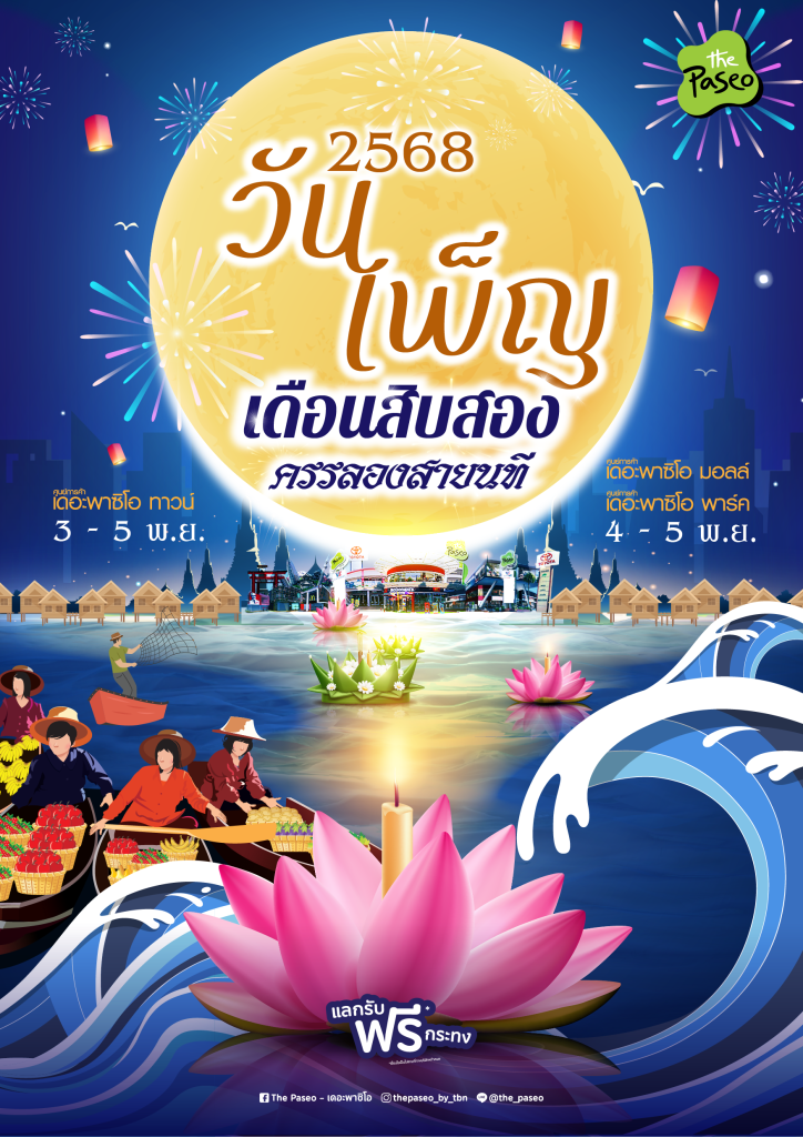 ลอยกระทงตามวิถีชีวิตแห่งสายน้ำ ณ เดอะ พาซิโอ นุ่งโจง ห่มสไบ มาร่วมสืบสานประเพณีไทยอันงดงาม ในงาน “วันเพ็ญเดือนสิบสอง ครรลองสายนที” ที่ เดอะ พาซิโอ ทั้ง 3 สาขา สัมผัสบรรยากาศย้อนยุคสุดยิ่งใหญ่ใต้แสงจันทร์เต็มดวง พร้อมลอยกระทงขอขมาพระแม่คงคา และชมการแสดงวัฒนธรรมมากมาย The Paseo Town รามคำแหง 3 –
