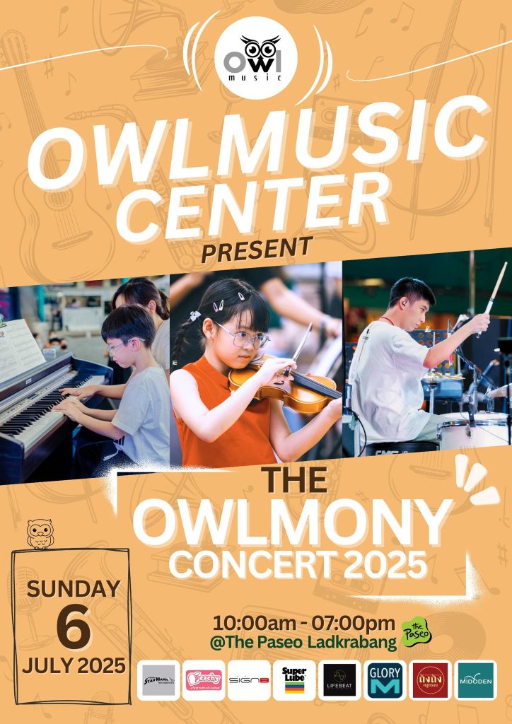 𝐎𝐰𝐥 𝐌𝐮𝐬𝐢𝐜 𝐂𝐞𝐧𝐭𝐞𝐫 [ 𝐏𝐫𝐞𝐬𝐞𝐧𝐭 ] ” 𝐓𝐇𝐄 𝐎𝐖𝐋𝐌𝐎𝐍𝐘 𝐂𝐎𝐍𝐂𝐄𝐑𝐓 𝟐𝟎𝟐𝟓 “ พบกับคอนเสิร์ตใหญ่ของพวกเรา วันอาทิตย์ที่ 6 กรกฎาคม 2568 จัดเต็มทั้งวัน ตั้งแต่ 10.00-19.00 น. มาสนุก มาจอยไปด้วยกัน ลุ้นรับรางวัลต่างๆมากมายในงาน และยังมีพี่ๆผู้สนับสนุนใจดีของพวกเรา
