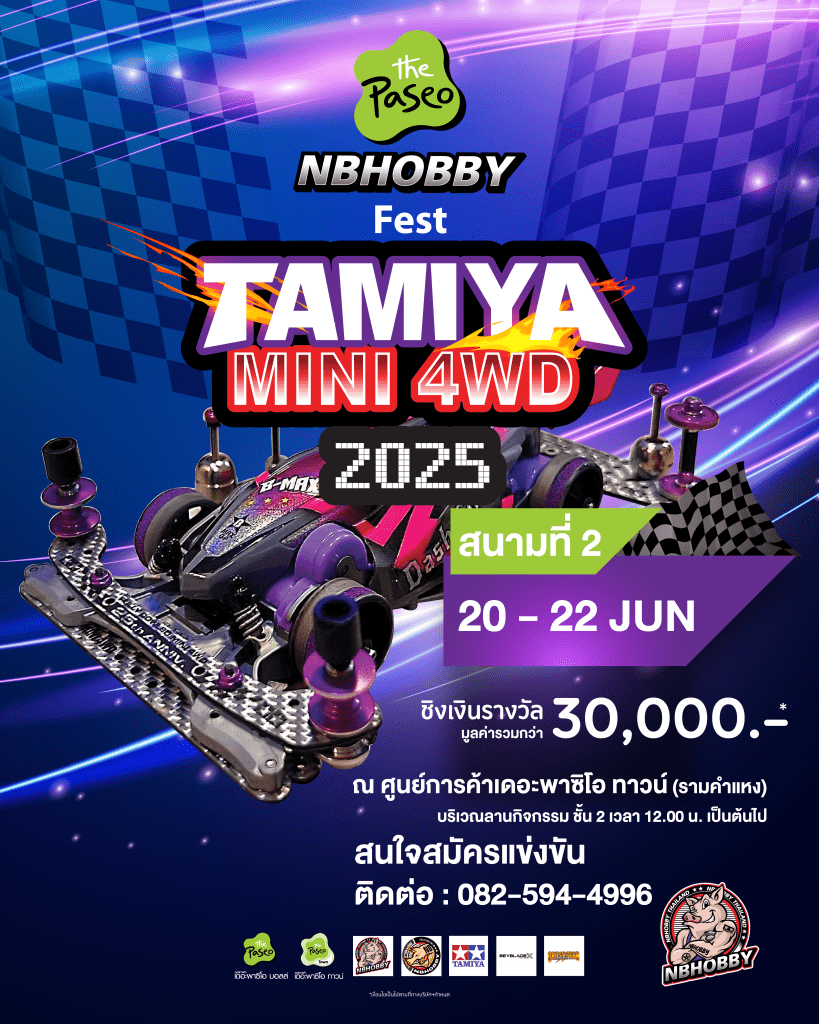 การแข่งขัน 𝐓𝐡𝐞 𝐏𝐚𝐬𝐞𝐨 𝐓𝐚𝐦𝐢𝐲𝐚 𝐦𝐢𝐧𝐢 𝟒𝐖𝐃 𝟐𝟎𝟐𝟓 ชิงเงินรางวัลรวมกว่า 30,000 บาท วันที่ 20-22 มิถุนายน 2025 ลานกิจกรรมชั้น 2 ศูนย์การค้า 𝐓𝐡𝐞 𝐏𝐚𝐬𝐞𝐨 𝐓𝐨𝐰𝐧 รามคำแหง #ThePaseoTown#ThePaseo#ThePaseoTownรามคำแหง#Tamiya