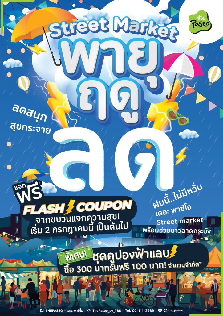 ฝนนี้…ไม่มีหวั่น ที่ Street Market The Paseo Mall ลาดกระบัง กับ “พายุฤดูลด” ลดสนุก สุขกระจายกับกิจกรรมจากทาง เดอะ พาซิโอ พร้อมช่วยชาวลาดกระบัง กับ คูปองฟ้าแลบ ให้เพื่อน ๆ ได้ อร่อยคุ้มรับหน้าฝน กับดีลเด็ด ๆ จาก ตลาดเย็น
