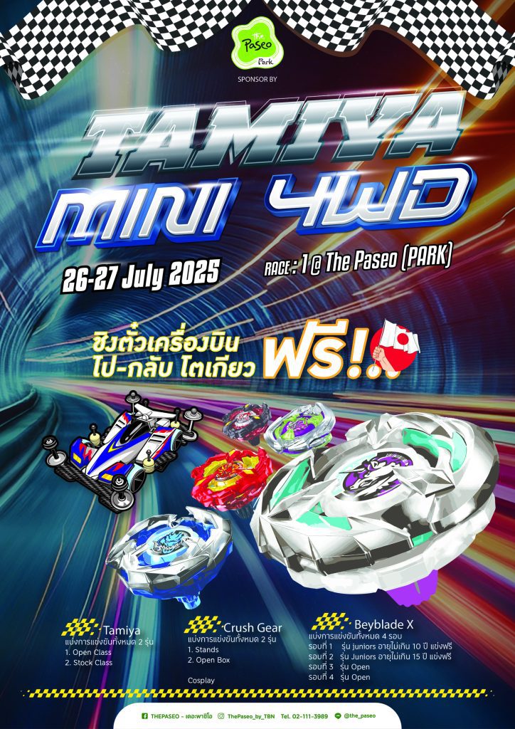 TAMIYA MINI 4WD จัดแข่ง 5 สนาม TAMIYA | CRUSH GEAR | BEYBLADE X รวมพลคนรักการแข่งขัน ศึกของเล่นระดับตำนาน พร้อมเปิดฉากแล้ว ชิงตั๋วเครื่องบินไป–กลับ โตเกียว ฟรี! 26–27 กรกฎาคมนี้ The Paseo Park กาญจนาภิเษก
