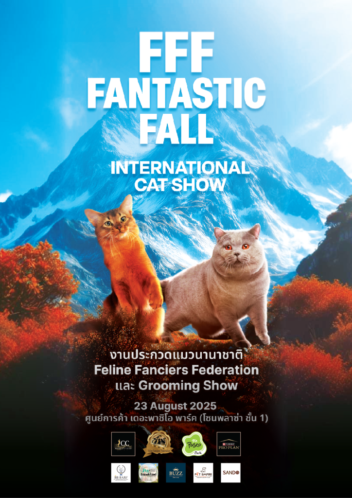 ขอเชิญทาสแมวและคนรักแมวทุกท่าน ร่วมงานประกวดแมวสุดยิ่งใหญ่แห่งปี “FFF Fantastic Fall International Cat Show” ที่รวมความน่ารักระดับอินเตอร์ของเหล่าแมวหลากสายพันธุ์ พร้อมกรรมการระดับโลกที่จะมาตัดสินอย่างใกล้ชิด! ไฮไลต์ภายในงาน รายละเอียดงาน สมัครเข้าร่วมการประกวด ติดต่อสอบถาม