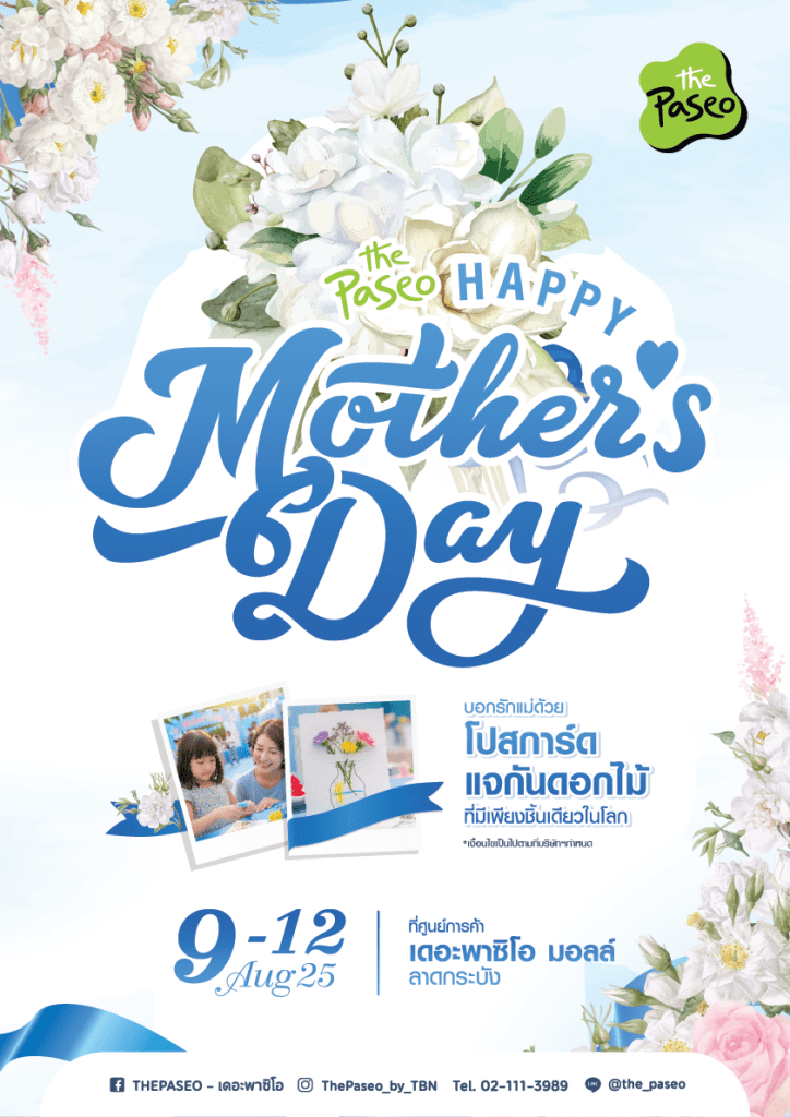 Blooming Love for Mom ความรักที่เบ่งบานเพื่อแม่ ในเดือนแห่งความรักอันอบอุ่น The Paseo เชิญชวนคุณและคุณแม่ มาร่วมสร้างความทรงจำสุดพิเศษกับกิจกรรม Happy Mother’s Day Workshop เพราะความรักของแม่ เปรียบเสมือนดอกไม้ที่ยังคงผลิบานและงดงามในทุกๆ วัน 🌷💐 📅 วันและเวลา วันที่ 9 – 12 สิงหาคม