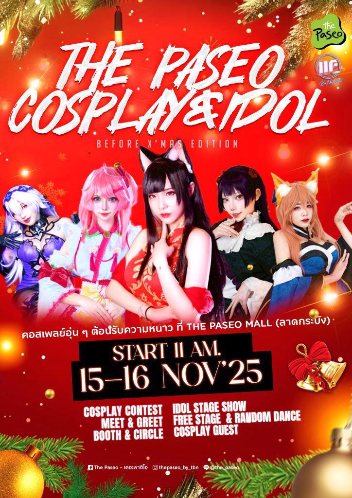 คอสเพลย์เยอร์และเหล่าไอดอล เตรียมตัวให้พร้อม! งาน THE PASEO COSPLAY & IDOL: BEFORE X’MAS EDITION กลับมาต้อนรับลมหนาว พบกับคอสเพลย์เกสต์สุดพิเศษ และกิจกรรมสนุก ๆ มากมาย กิจกรรมไฮไลท์ • IDOL STAGE SHOW: การแสดงจากเหล่าไอดอลสุดน่ารัก • FREE STAGE